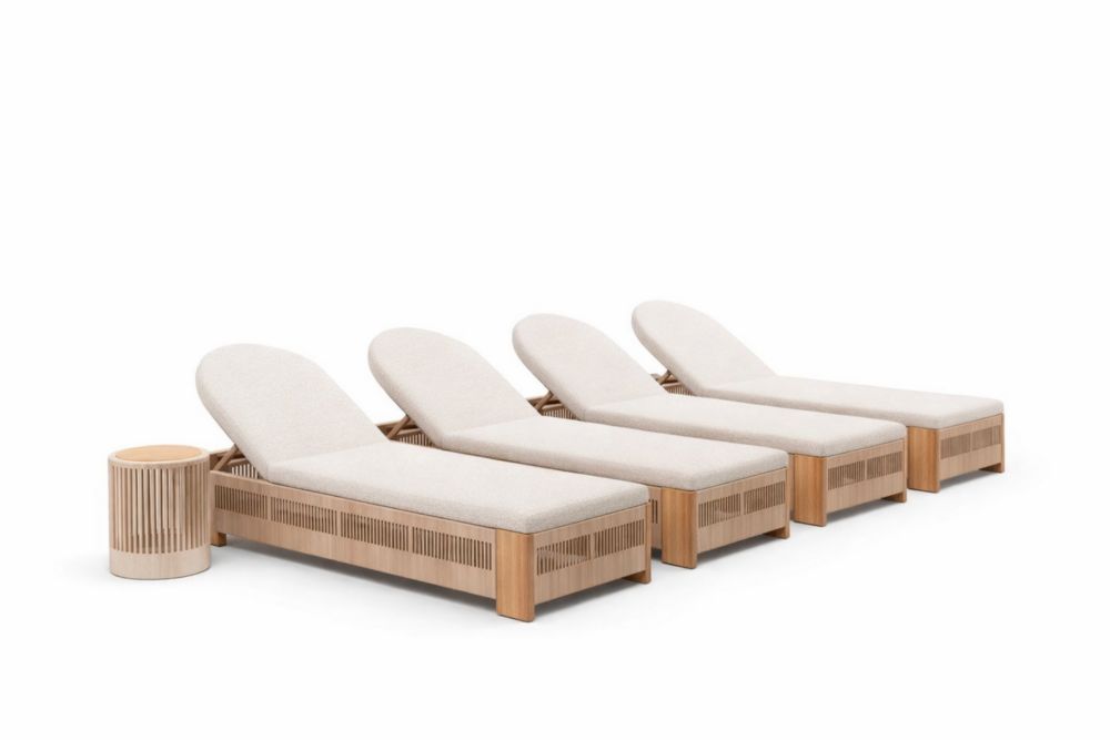 Ensemble de 4 chaises longues en bois avec coussins beige