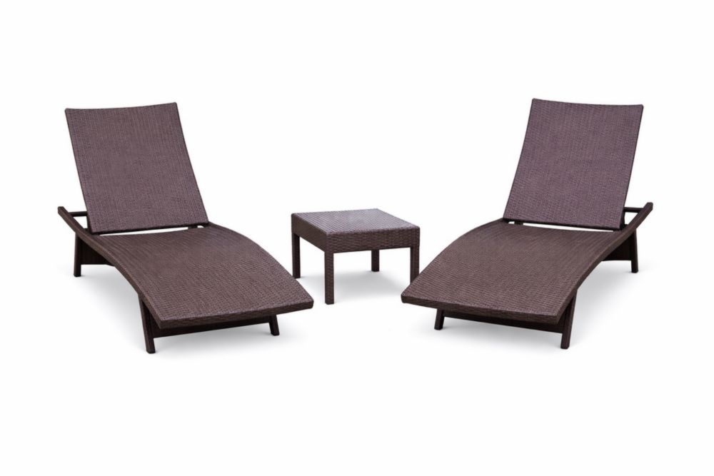 Chaises Longues de Jardin en Résine Tressée Marron avec Table d'Appoint